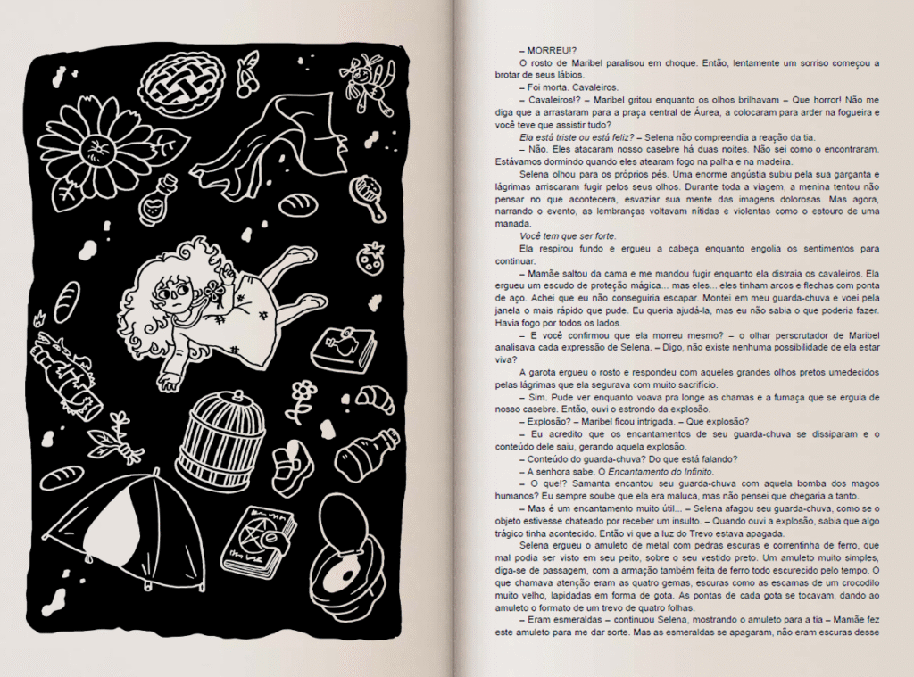 Numa noite, cavaleiros do reino de Caminet encontram o casebre protegido por encantamentos e atacam sem piedade. Selena consegue escapar e, sem ter para onde ir, busca abrigo na casa da única parente que lhe resta, a tia Maribel. Só que a tia nada tem de acolhedora e, a partir dali, começa uma jornada difícil em que Selena precisa crescer, aprender magia, fazer aliados e descobrir quem ela é de verdade.