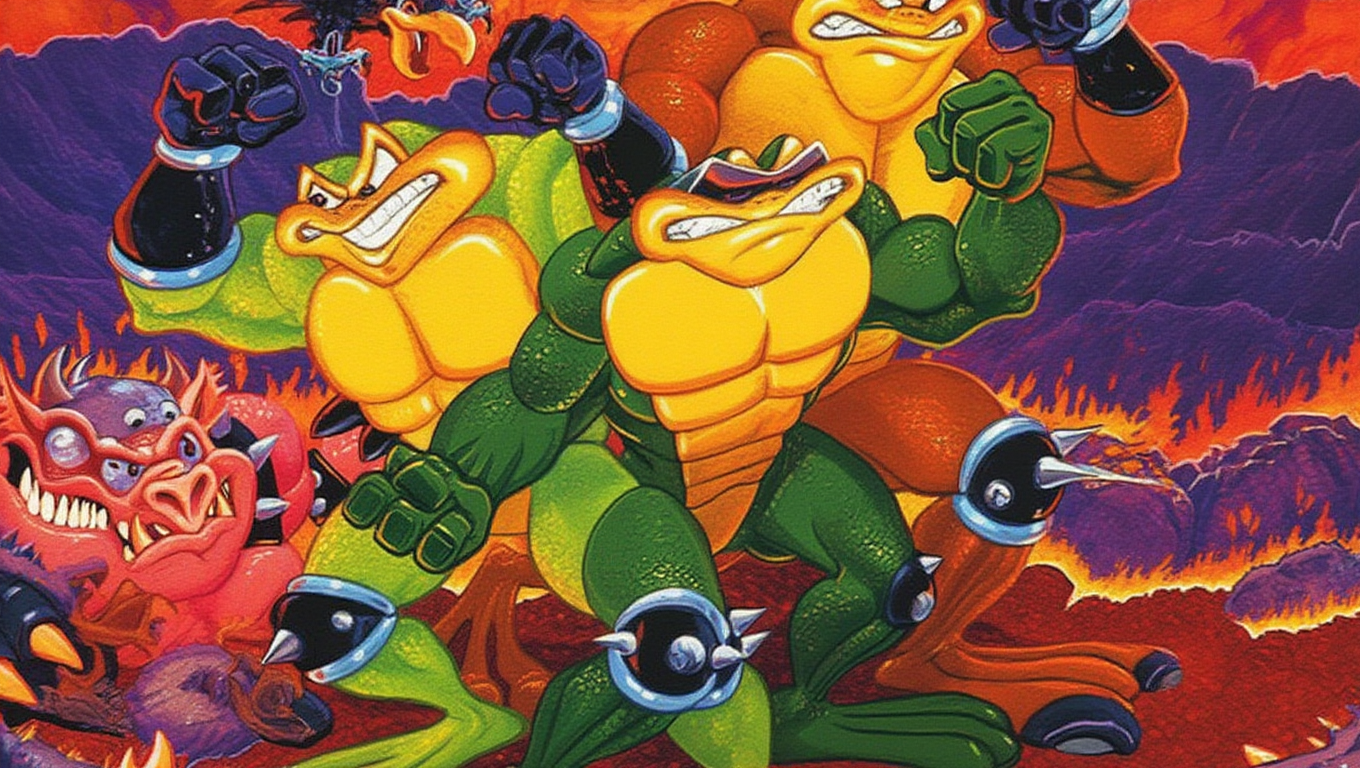 Muita gente sente isso na pele: os sapos têm aquela pegada “radical”, humor, atitude, cara de desenho. Não é coincidência. Registros históricos apontam que a Rare criou a série em resposta ao interesse/febre em torno das Teenage Mutant Ninja Turtles (era a onda do momento, e a indústria surfou).