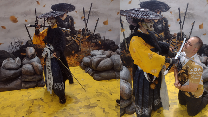Gostaria de destacar aqui a cosplayer da protagonista do Ghost of Yotei, Atsu, incorporada por Samira Hayashi que estava no estande da Playstation para bater fotos com o público. Além de muito bem caracterizada ela era muito simpática e atendia a todos os pedidos da galera.
