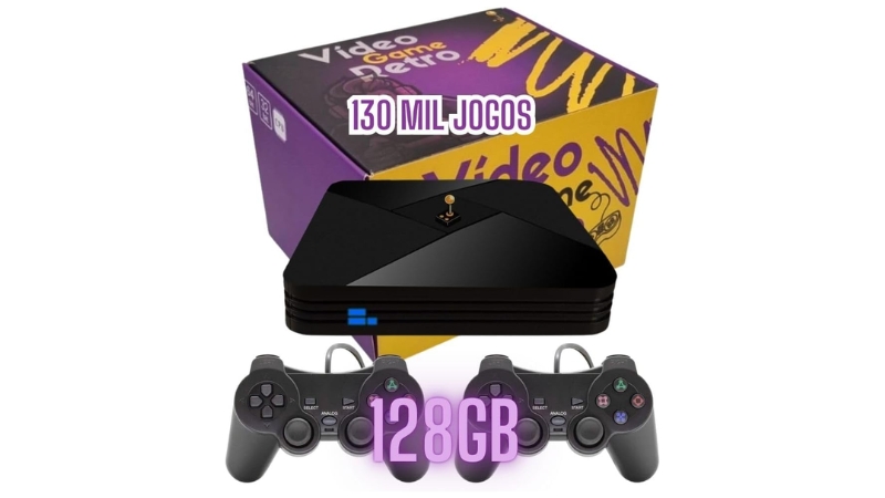 O famoso stick, que segue o formato de produtos como o Fire TV Stick da Amazon, é a forma mais barata, e mais simples de ter acesso aos clássicos. Basta plugar o pequeno dispositivo na TV e jogar. Ele vem com dois controles simples, mas que são eficientes para o que é necessário, e roda jogos do Atari ao PlayStation 1, passando por jogos de Mega Drive, NES e Mame, entre outros.