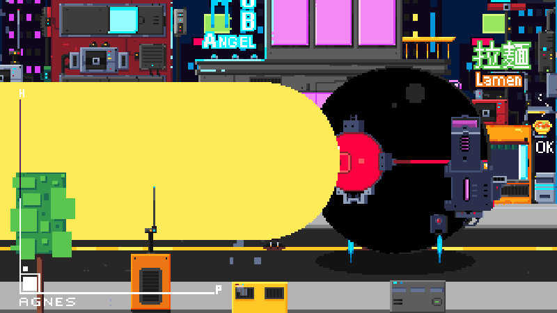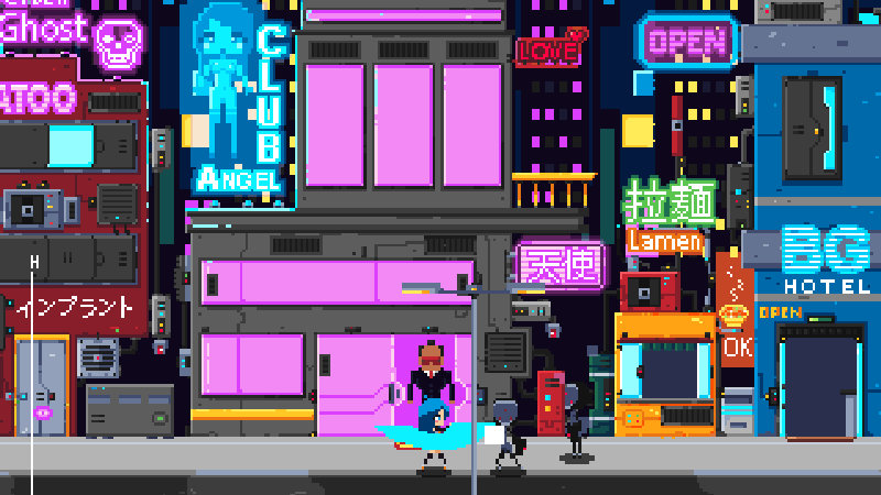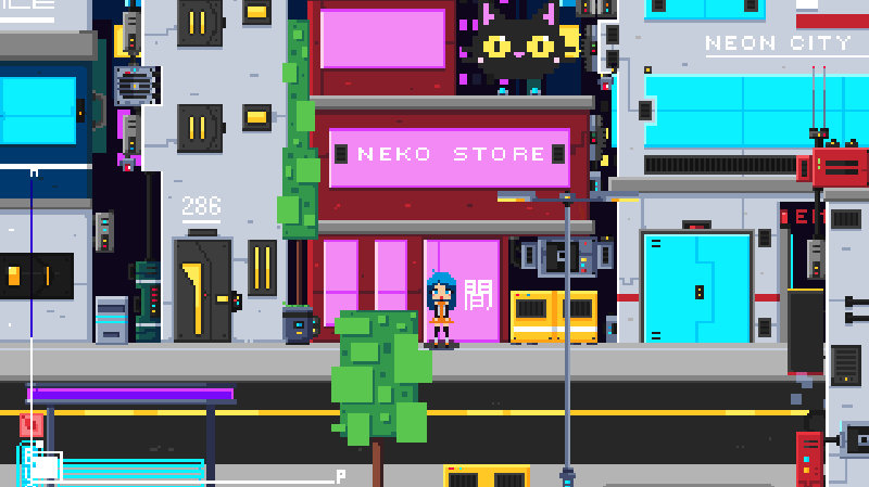 A ambientação cyberpunk é reforçada por trilha eletrônica com sintetizadores que sustentam bem a ação. O confronto contra o chefe já demonstra preocupação em diferenciar momentos de tensão. Mesmo em alpha, há coerência entre som e visual.