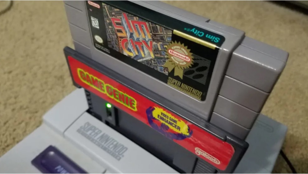 O Game Genie foi criado pela Codemasters no fim dos anos 80 e distribuído por empresas como a Galoob (EUA) e Camerica (Canadá). Ele fica entre o cartucho e o console (formato pass-through) e “intercepta” leituras da ROM do jogo. Quando detecta um código que você digitou, injeta outro valor no lugar do original. Resultado: dá para mudar quantidade de vidas, dano sofrido, física do pulo, fase inicial, timers, entre muitas outras coisas.