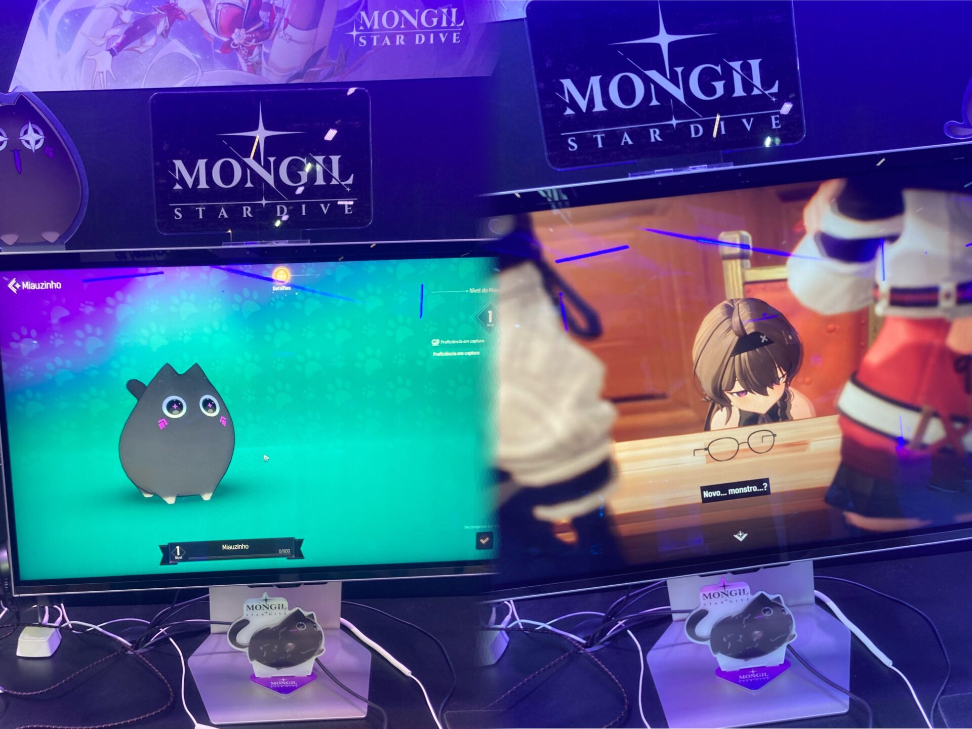Na última edição da BGS, a gigante sul-coreana Samsung marcou presença exibindo seus produtos, e nós tivemos a chance de experimentá-los. Contudo, um monitor se destacou por seu realismo impressionante: o novíssimo Odyssey 3D! E talvez você se pergunte sobre o que torna isso tão especial… Surpresa! Não é preciso usar óculos especiais para visualizar as imagens tridimensionais, pois uma câmera integrada rastreia seus olhos, ajustando os ângulos de exibição na tela e criando a ilusão de que os elementos saltam para fora. O jogo escolhido para essa demonstração foi “Mongil Stardive“, um RPG de ação com foco em domar criaturas, similar a jogos como “Genshin Impact” e “Pokémon“. Uma versão de teste (CBT2) estava acessível no estande da Samsung, permitindo aos visitantes explorarem o modo história e os personagens disponíveis nesta fase fechada.