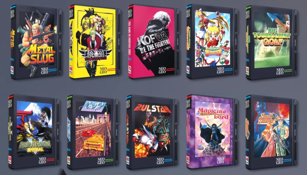 Metal Slug, The King of Fighters 2002, Garou: Mark of the Wolves, Big Tournament Golf (conhecido como Neo Turf Masters no ocidente), Shock Troopers, Samurai Shodown V Special, Pulstar, Twinkle Star Sprites, Magician Lord e Over Top.