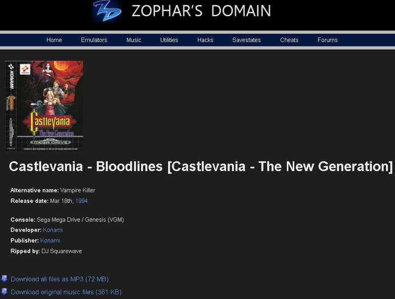 Zophar’s Domain – Uma das melhores fontes se você quiser experimentar ouvir músicas diretamente extraídas das ROMs