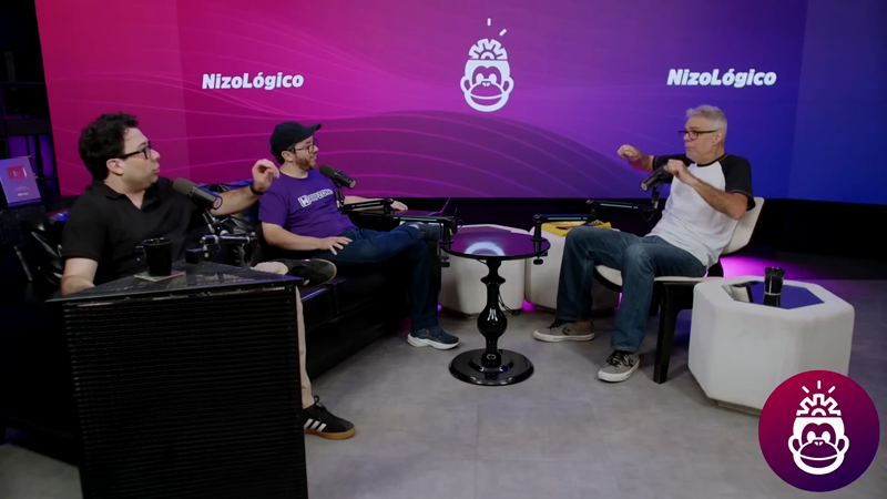 Um dos momentos mais divertidos do episódio foi quando o Nizo — que já é famoso por cutucar o assunto — voltou a falar que não gosta de Chaves. A conversa rendeu, teve risada, provocação, e no final ficou combinado que eu indicaria o Renan, presidente do fã-clube do Chaves, pra participar de um episódio futuro para debater com ele sobre o assunto.